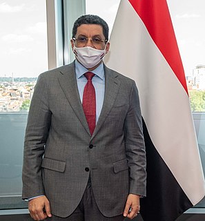 Ahmad Awad bin Mubarak is a Yemeni politician who is the current Foreign Minister of Yemen. He was previously the Ambassador of Yemen to the United States.