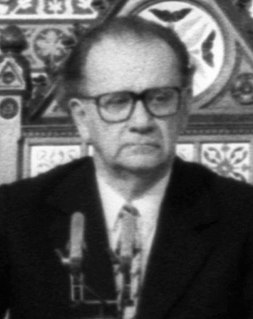 György Szabad was a Hungarian politician and historian, founder member of the Hungarian Democratic Forum (MDF). He was the Speaker of the National Assembly of Hungary between 1990 and 1994. He was a member of the Batthyány Society of Professors.