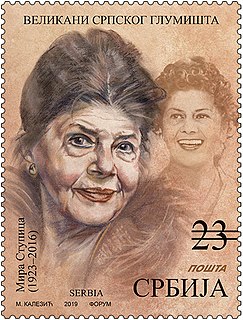 Miroslava "Mira" Stupica was a Serbian actress best known for her work in the theater, but also had extensive career on television and in films. Enjoying the enduring popularity for over 60 years and celebrated as the ‘actress of the century’ by her peers, she is considered one of the best Serbian actresses of all time.