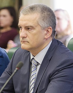 Sergey Valeryevich Aksyonov is the Head of the Republic of Crimea from 9 October 2014 which is an internationally disputed federal subject of Russia located on the Crimean Peninsula. Member of the Bureau of the Supreme Council of the party United Russia.