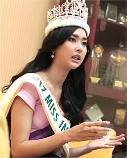 Kevin Lilliana Junaedy is an Indonesian model and beauty pageant titleholder who was crowned Miss International 2017. She is the first Indonesian and the first moslem women to win Miss International, and was the first to win one of the four major international pageants for Indonesia. Prior to winning Miss International, She was previously crowned as Puteri Indonesia Lingkungan 2017. Outside of pageantry, Lilliana works as a TV Presenter and Interior Designer.