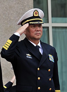 Wu Shengli is a retired Chinese admiral who served as commander of the People's Liberation Army Navy (PLAN) from 2006 to 2017. Prior to that, he served as PLA's deputy chief of staff, commander of the South Sea Fleet and commandant principal of Dalian Naval Academy.