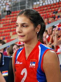 Jovana Brakočević Canzian is a Serbian female professional volleyball player, who was a member of the Serbia women's national volleyball team that won the silver medal at the 2016 Summer Olympics, and also the silver medal at the 2007 European Championship in Belgium and Luxembourg. There she was named Best Server of the tournament. She was also a member of the Serbia women's national volleyball team that won the gold medal at the 2011 European Championship in Serbia and Italy. There she was voted MVP of the tournament.