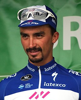 Julian Alaphilippe is a French professional road cyclist and cyclocross racer and 2020 UCI road racing world champion, who currently rides for UCI WorldTeam Deceuninck–Quick-Step. He is the brother of racing cyclist Bryan Alaphilippe.