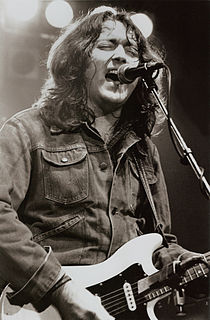 William Rory Gallagher was an Irish blues and rock multi-instrumentalist, songwriter, and producer. Born in Ballyshannon, County Donegal, and brought up in Cork, Gallagher recorded solo albums throughout the 1970s and 1980s, after forming the band Taste during the late 1960s. His albums have sold over 30 million copies worldwide.