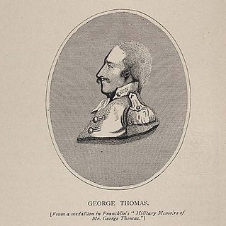George Thomas, nicknamed Jaharai Jung and Jahazi Sahib, was an Irish mercenary and later a Raja who was active in 18th-century India. From 1798 to 1801, he ruled a small kingdom in India, which he carved out of Hisar and Rohtak districts of Haryana.