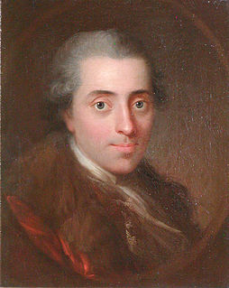 Johannes Ewald was a Danish national dramatist, psalm writer and poet. The lyrics of a song from one of his plays are used for one of the Danish national anthems, Kong Christian stod ved højen mast which has equal status of national anthem together with Der er et yndigt land. Quite until the days of romanticism, Ewald was considered the unsurpassed Danish poet. Today he is probably more lauded than read; though considered classics, only few of his works have become popular.