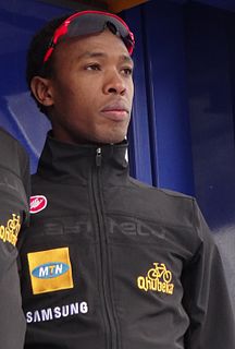 Adrien Niyonshuti is a Rwandan former professional bicycle racer, who rode professionally for Team Dimension Data from 2009 to 2017. He now works as a directeur sportif for UCI Continental team Skol Adrien Cycling Academy. Although he survived, six of Niyonshuti's brothers were killed in the Rwandan genocide of 1994. Niyonshuti began riding a bicycle given to him by his uncle as a teenager, when he came to the attention of former professional cyclist Jacques Boyer in 2006 during the first Wooden Bike Classic.