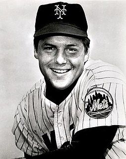 George Thomas Seaver, nicknamed "Tom Terrific" and "the Franchise", was an American professional baseball pitcher who played 20 seasons in Major League Baseball (MLB). He played for the New York Mets, Cincinnati Reds, Chicago White Sox, and Boston Red Sox from 1967 to 1986. A longtime Met, Seaver played a significant role in their victory in the 1969 World Series over the Baltimore Orioles.