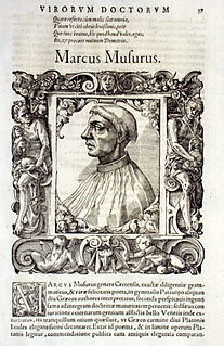 Marcus Musurus was a Greek scholar and philosopher born in Candia, Venetian Crete.