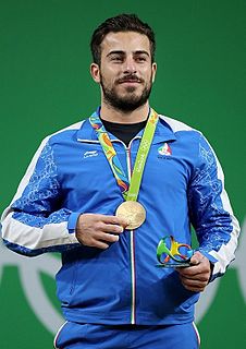 Kianoush Rostami is an Iranian Olympian weightlifter. He competed at the 2016 Summer Olympics, in the 85 kg event, winning the gold medal and setting a new world record with a total lift of 396 kilograms.