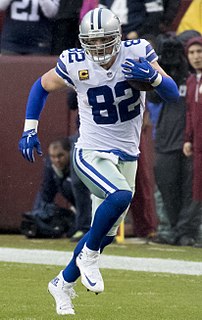 Christopher Jason Witten is a former American football tight end who played for the Dallas Cowboys and Las Vegas Raiders of the National Football League (NFL). He played college football for the University of Tennessee, and was drafted by the Dallas Cowboys in the third round of the 2003 NFL Draft. Witten ranks second in all-time career receptions and receiving yards by an NFL tight end, trailing only Tony Gonzalez. Initially retiring in 2018, he became a color analyst for ESPN's Monday Night Football.