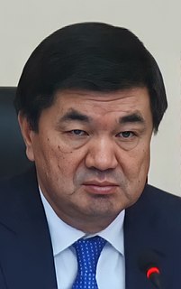 Mukhammetkalyy Duyshekeyevich Abylgaziyev is a Kyrgyz politician who served as the Prime Minister of Kyrgyzstan from 20 April 2018 to 15 June 2020.