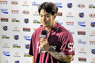 Byung-ho Park is a South Korean professional baseball designated hitter and first baseman for the Kiwoom Heroes of the KBO League. He previously played for the LG Twins, and Minnesota Twins of Major League Baseball (MLB). In the KBO, Park had two consecutive seasons with 50 home runs (2014–2015) and was the home run title winner for four consecutive seasons (2012–2015). He holds the KBO record for runs batted in during a single season, with 146 RBI in 2015.