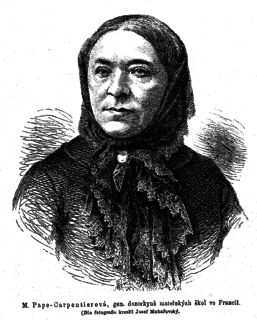 Marie Pape-Carpantier (1815–1878) was a French educator born on 11 September 1815 in Sarthe, France and died in Villiers-le-Bel (Val-d'Oise) on 31 July 1878. She grew to play a major part in revolutionizing education in French schools. She was a feminist who worked to fix poverty, social injustice, and to further the education of girls. She also wrote articles for the weekly French newspaper "The French Economist".