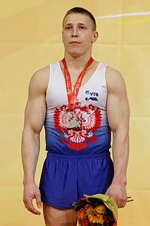 Denis Mikhailovich Ablyazin is a Russian artistic gymnast. He is a five-time medalist at the Olympic Games. At the 2012 London Olympics he won silver in vault and bronze in floor. At the 2016 Rio de Janeiro Olympics, he won silver with the Russian men's team, a silver in vault and bronze in rings.