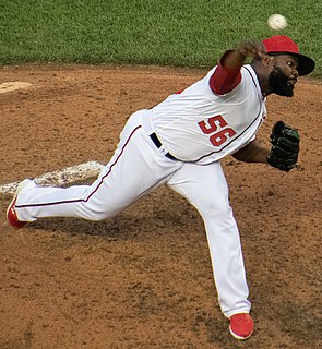 Fernando Rodney is a Dominican–American professional baseball pitcher who is currently a free agent. He has played in Major League Baseball (MLB) for the Detroit Tigers, Los Angeles Angels of Anaheim, Tampa Bay Rays, Seattle Mariners, Chicago Cubs, San Diego Padres, Miami Marlins, Arizona Diamondbacks, Minnesota Twins, Oakland Athletics and Washington Nationals.