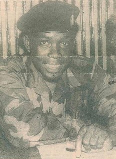 Valentine Esegragbo Melvine Strasser is an ex-military leader who served as head of state of Sierra Leone from 1992 to 1996. He had been a junior military officer but in 1992, he became the world's youngest Head of State when he seized power three days after his 25th birthday. He was the leading member in a group of six young Sierra Leonean soldiers who overthrew president Joseph Saidu Momoh on 29 April 1992 military coup. They established a military junta called the National Provisional Ruling Council (NPRC).