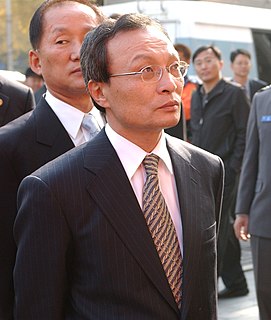 Lee Hae-chan is a South Korean politician who served as Leader of the Democratic Party of Korea from 2018 to 2020. He also served as Prime Minister of South Korea from 2004 to 2006. He is currently serving in his seventh term in the National Assembly.