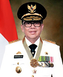 Nurdin Abdullah is an Indonesian politician and academician who is the 8th governor of South Sulawesi and regent of Bantaeng Regency between 2008 and 2018.