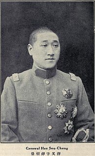 Hsu Seu-Cheng or Xu Shuzheng was a Chinese warlord in Republican China. A subordinate and right-hand man of Duan Qirui, he was a prominent member of the Anhui clique.