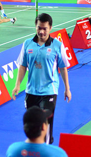 Jakrapan Thanathiratham is a former Thai badminton player from Chiang Mai Province. Thanathiratham was the boys' singles bronze medalist at the 2000 Asian Junior Championships in Kyoto, Japan. He trained at the RBAC badminton club.