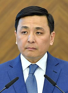 Umirzak Shukeyev is a Kazakh politician who's serving as the akim of Turkistan Region since 2019. Prior to that, he served as the Minister of Agriculture from 2017 to 2019, chairman of Samruk-Kazyna, Kazakhstan's sovereign wealth fund from 2011 to 2017, First Deputy Prime Minister from 2009 to 2011, and prior to that, Deputy Prime Minister from 2007, akim of South Kazakhstan from 2006 to 2007, akim of Astana from 2004 to 2006, akim of Kostanay Region from 1998 to 2004, Minister of Economy and Trade from 1995 to 1997 while serving as Deputy Prime Minister.