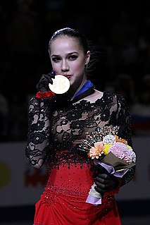 Alina Ilnazovna Zagitova is a Russian figure skater. She is the 2018 Olympic champion, the 2019 World champion, the 2018 European champion, 2017–18 Grand Prix Final champion, and the 2018 Russian national champion. Zagitova also won a silver medal in the team event at the 2018 Winter Olympics, representing the Olympic Athletes from Russia team. Zagitova is currently the eighth highest ranked ladies' singles skater in world by the International Skating Union following the 2019–20 figure skating season.