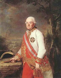 Count András Hadik de Futak was a Hungarian nobleman and Field Marshal of the Habsburg Army. He was Governor of Galicia and Lodomeria from January 1774 to June 1774, and the father of Karl Joseph Hadik von Futak. He is famous for capturing the Prussian capital Berlin during the Seven Years' War.