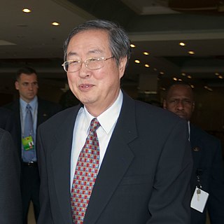 Zhou Xiaochuan is a retired Chinese economist, banker, reformist and bureaucrat. Zhou served as the Governor of the People's Bank of China from 2002 to 2018. In 2001, his policies led to a stock crash, forcing him to revise his outlooks.
