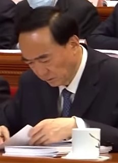 Chen Quanguo is a Chinese politician and current Communist Party Secretary of Xinjiang Uyghur Autonomous Region and a member of the 19th Politburo of the Communist Party of China. Most recently, he was the Communist Party Secretary of Tibet Autonomous Region. Originally from Henan province, Chen was among the first batch of students to graduate university after the resumption of Gaokao examinations in 1978.