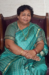 Anusuiya Uikey is a politician and currently serving as the governor of Chhattisgarh. She was elected to the Madhya Pradesh Legislative Assembly from Damua in the 1985 Madhya Pradesh Legislative Assembly election as a member of the Indian National Congress. She became Minister for Women and Child Development in Arjun Singh cabinet. She became a member of Rajya Sabha from Madhya Pradesh in 2006.