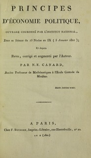 Nicolas-François Canard was a French mathematician, philosopher and economist. He was one of the pioneers of applying mathematics to economic problems, forestalling the works of Antoine Augustin Cournot, William Stanley Jevons, and others.