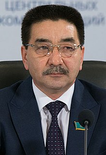 Jambyl Aýjanuly Ahmetbekov is a Kazakh politician, Secretary of Central Committee of the People's Party of Kazakhstan since 2007, and a member of Mazhilis from 2012. He was a nominee for the Communist People's Party of Kazakhstan (QKHP) in the 2011 and 2019 Kazakh presidential election.