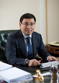 Erbolat Askarbekuly Dosaev is a Kazakh politician who served as a Deputy Prime Minister from 29 August 2017 to 25 February 2019. He served as the Minister of Finance from 16 June 2003 head of the Agency for Regulating Natural Monopolies, and later as the Health Minister. In January 2013, Dosaev was appointed head of a reorganized Minister of National Economy.