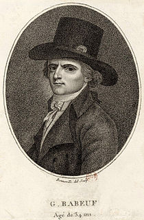 François-Noël Babeuf, also known as Gracchus Babeuf, was a French proto-socialist, revolutionary and journalist of the French Revolutionary period. His newspaper Le tribun du peuple was best known for its advocacy for the poor and calling for a popular revolt against the Directory, the government of France. He was a leading advocate for democracy and the abolition of private property. He angered the authorities who were clamping down hard on their radical enemies. In spite of the efforts of his Jacobin friends to save him, Babeuf was executed for his role in the Conspiracy of the Equals.