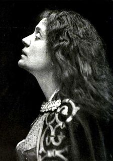 Eleonora Giulia Amalia Duse, often known simply as Duse, was an Italian actress, rated by many as the greatest of her time, in keen competition with Sarah Bernhardt. She performed in many countries, notably in the plays of Gabriele d'Annunzio and Henrik Ibsen. Duse achieved a unique power of conviction and verity on the stage through intense absorption in the character, “eliminating the self” as she put it, and letting the qualities emerge from within, not imposed through artifice.