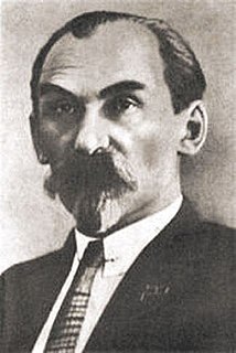 Mykola Oleksiyovych Skrypnyk was a Ukrainian Bolshevik revolutionary and Communist leader who was a proponent of the Ukrainian Republic's independence, and led the cultural Ukrainization effort in Soviet Ukraine. When the policy was reversed and he was removed from his position, he committed suicide rather than be forced to recant his policies in a show trial. He also was the Head of the Ukrainian People's Commissariat, the post of the today's Prime-Minister.