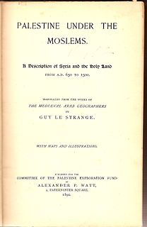 Guy Le Strange was a British Orientalist noted especially for his work in the field of the historical geography of the pre-modern Middle Eastern and Eastern Islamic lands, and his editing of Persian geographical texts. He was a scholar of the Persian, Arabic, and Spanish languages.