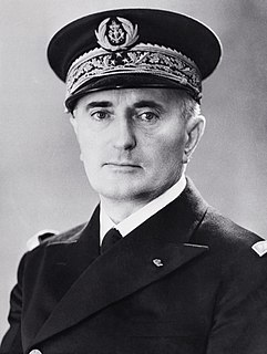 Jean Louis Xavier François Darlan was a French admiral and political figure. Born in Nérac, Darlan graduated from the École navale in 1902 and quickly advanced through the ranks following his service during World War I. He was promoted to rear admiral in 1929, vice admiral in 1932, lieutenant admiral in 1937 before finally being made admiral and Chief of the Naval Staff in 1937. In 1939, Darlan was promoted to admiral of the fleet, a rank created specifically for him.
