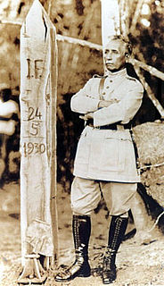 Marshal Cândido Mariano da Silva Rondon was a Brazilian military officer most famous for his telegraph commission and exploration of Mato Grosso and the Western Amazon Basin, as well as his lifelong support for indigenous Brazilians. He was the first director of Brazil's Indian Protection Service or SPI and supported the creation of the Xingu National Park. The Brazilian state of Rondônia is named after him.