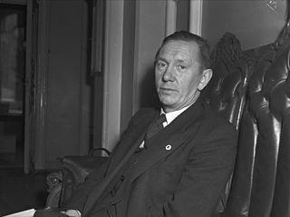 Oscar Fredrik Torp (help·info) was a Norwegian politician for the Norwegian Labour Party. He was party leader from 1923 to 1945, and mayor of Oslo in 1935 and 1936. In 1935 he became acting Minister of Defence in the government of Johan Nygaardsvold. He was also Minister of Social Affairs from 1936 to 1939, and then Minister of Finance from 1939 to 1942. He was appointed Minister of Defence again in 1942 in the London-based Norwegian exile government. He continued until the election in 1945 when he became Minister of Provisioning and Reconstruction until 1948.