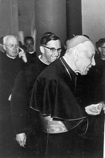 Augustin Bea, S.J., was a German Jesuit priest and scholar at the Pontifical Gregorian University specialising in biblical studies and biblical archeology. He also served as the personal confessor of Pope Pius XII.
