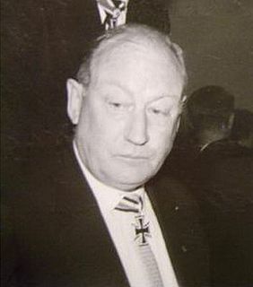 Heinz Lammerding was a German SS functionary and war criminal during the Nazi era. During World War II, he commanded the SS Panzer Division Das Reich that perpetrated the Tulle and the Oradour-sur-Glane massacres in occupied France. After the war, Lammerding was convicted in absentia for having ordered the murder of approximately 750 French civilians, but remained protected by Germany after serving a prison sentence there.
