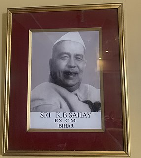 Krishna Ballabh Sahay was an Indian freedom fighter, who after Indian Independence became the Revenue Minister of Bihar and then became the fourth Chief Minister of unified Bihar.