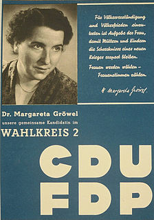 Margarete Gröwel was a German teacher who became a politician. Later, in 1953, she became the first woman to serve in the German consular service in Houston.
