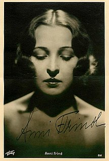 Anny Ondra was a Czech film actress. She began her career in 1920 and appeared in Czech, German, Austrian, French and English films. In 1933, she married German boxing champion Max Schmeling.