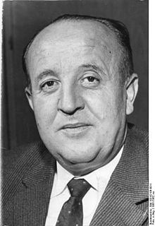 Hermann Höcherl was a German politician of the Christian Social Union in Bavaria (CSU). He served as Federal Ministry of the Interior from 1961 to 1965 and as Federal Minister for Food, Agriculture and Forests from 1965 to 1969.