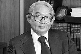 Mom Rajawongse Kukrit Pramoj was a Thai politician, scholar and professor. He was Speaker of the House of Representatives of Thailand 1973–1974. He was the thirteenth Prime Minister of Thailand, serving in office from 1975 to 1976 between Seni Pramoj, his brother's, terms. Being the great-grandson of King Rama II, he was a member of the Thai royal family. He also portrayed the Prime Minister of the fictional country of "Sarkhan" in the 1963 motion picture The Ugly American with Marlon Brando.
