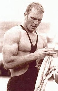 Ivan Sergeyevich Yarygin was a Soviet and Russian heavyweight freestyle wrestler. Between 1970 and 1980 he won all his major international competitions, except for the 1970 and 1974 European championships where he placed second. Yarygin was an Olympic champion in 1972 and 1976, being the first wrestler to go through an Olympic competition with straight pin victories and no foul points, a world champion in 1973, a World Cup winner five times, has never lost a single match in World Cup competition, and a European champion in 1972 and 1975–76, and won a world cup in 1973, 1976–77 and 1979–80. He also set a record for the fastest pin victory in the World Cup history at 27 seconds. After retiring in 1980, he headed the Soviet freestyle wrestling team from 1982 to 1992 and the Russian Wrestling Federation from 1993 until his untimely death in a car crash in 1997. An exceptional upper-body wrestler, Yarygin was widely regarded for his tremendous physique and high-strength aggressive style, always aiming to pin down his opponents, with most of his stoppage wins came by way of fall achieved through rapid fireman's lift and slamming the opponent to the mat. One of the most prestigious tournaments in the World was put together in his honor - The Golden Grand Prix Ivan Yarygin Tournament is held annually in Krasnoyarsk, Russia, and has the reputation of being one hardest tournaments in the World. The Yarygin Memorial annually sees the world's best wrestlers come to Siberia, with the added element that Russia's autonomous oblasts and republics such as Dagestan and Chechnya field independent teams alongside an All-Russia selection.